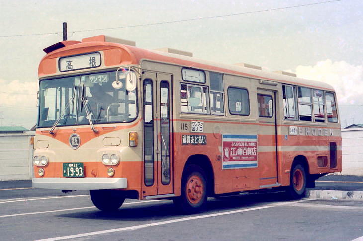 高根線は、住宅街などを走る狭隘路線のため、ショートサイズのバスでした。