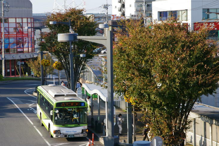 令和3年10月28日、武蔵野線東川口駅で貨物列車を撮影時、駅前が見事に色づいていることに気がつきました。 思わず、駅のホームから、紅葉とバスを撮影しました。 なお、年式については推定です。