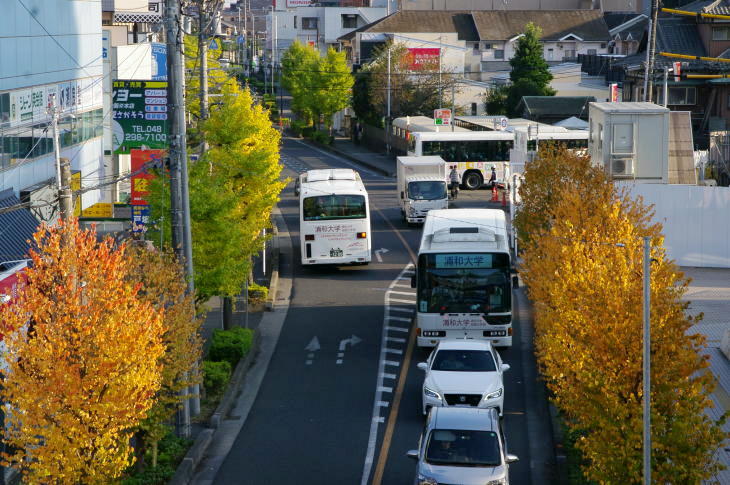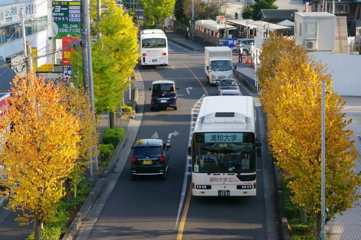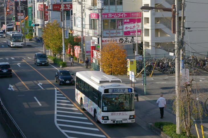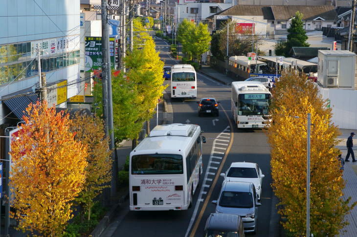武蔵野線東川口駅前の紅葉とバス(令和3年)