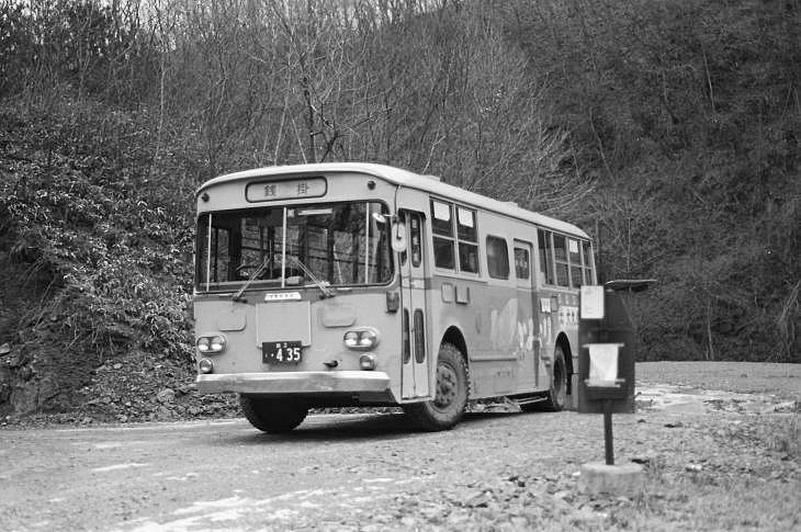 昭和55年1月5日に浅岸学校線を訪問しましたが積雪がなく一般車が運用に就いていました いすゞBA30(川崎重工)昭和45年6月 浅岸学校線 銭掛(回転場所矢倉) |