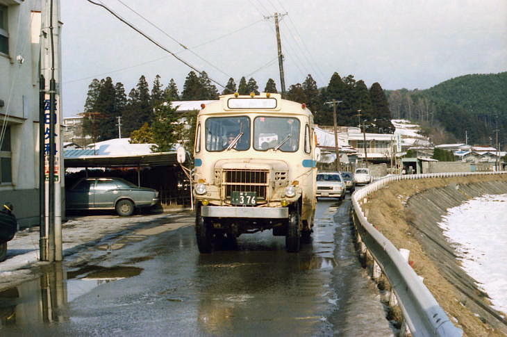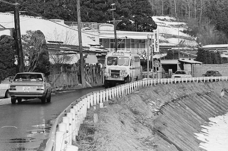 やっとボンネットバスに巡り会えました 浅岸学校線 山岸小学校バス停付近 昭和55年2月11日 |
